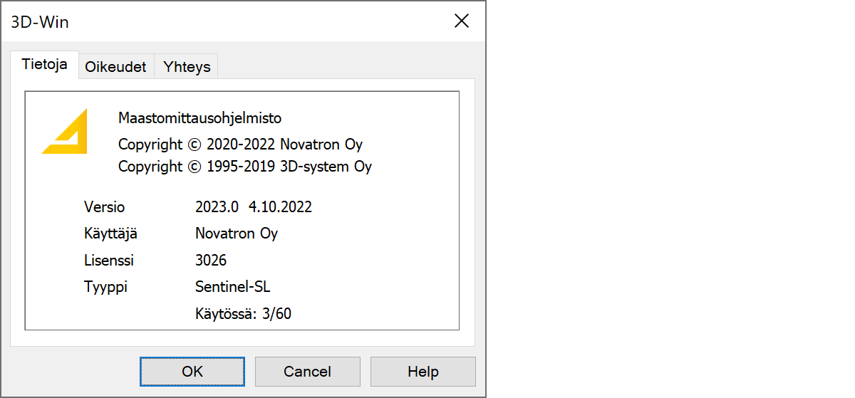 Tietoja ohjelman versiosta ja käyttöoikeuksista.