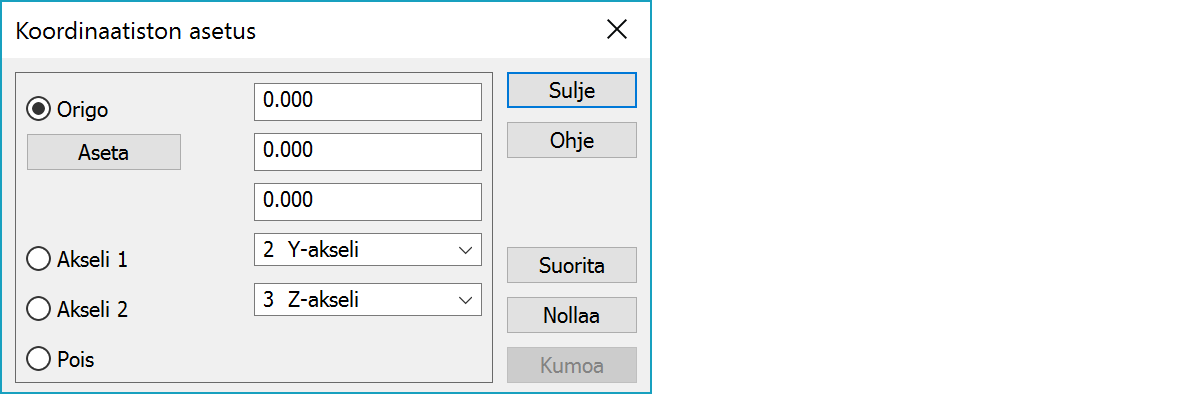 Voit osoittaa myös kahden muun akselin suunnat, jolloin koordinaatisto käännetään origon ja akseleiden osoittamaan asentoon.