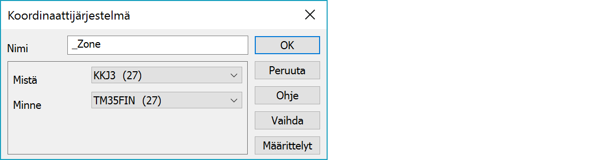 Koordinaattijärjestelmän vaihto KKJ-, TM-, SWEREF- ja RT90-kaistoille.