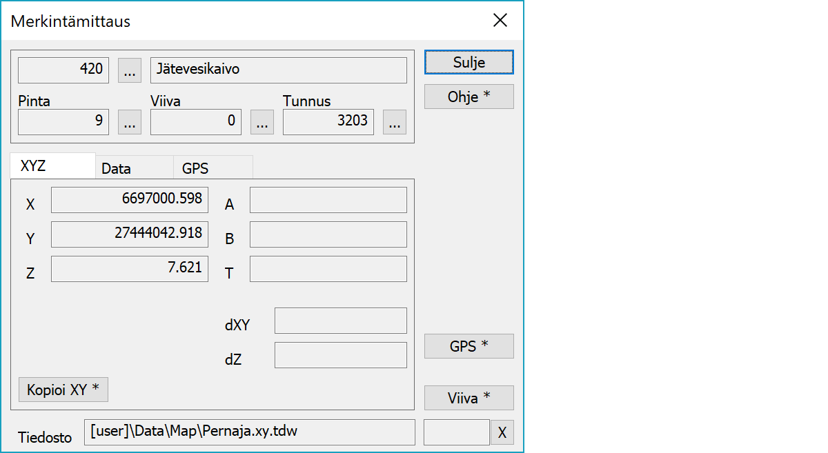 MerkintämittausToiminnolla voidaan merkitä piste maastoon käyttäen GPS-laitetta.