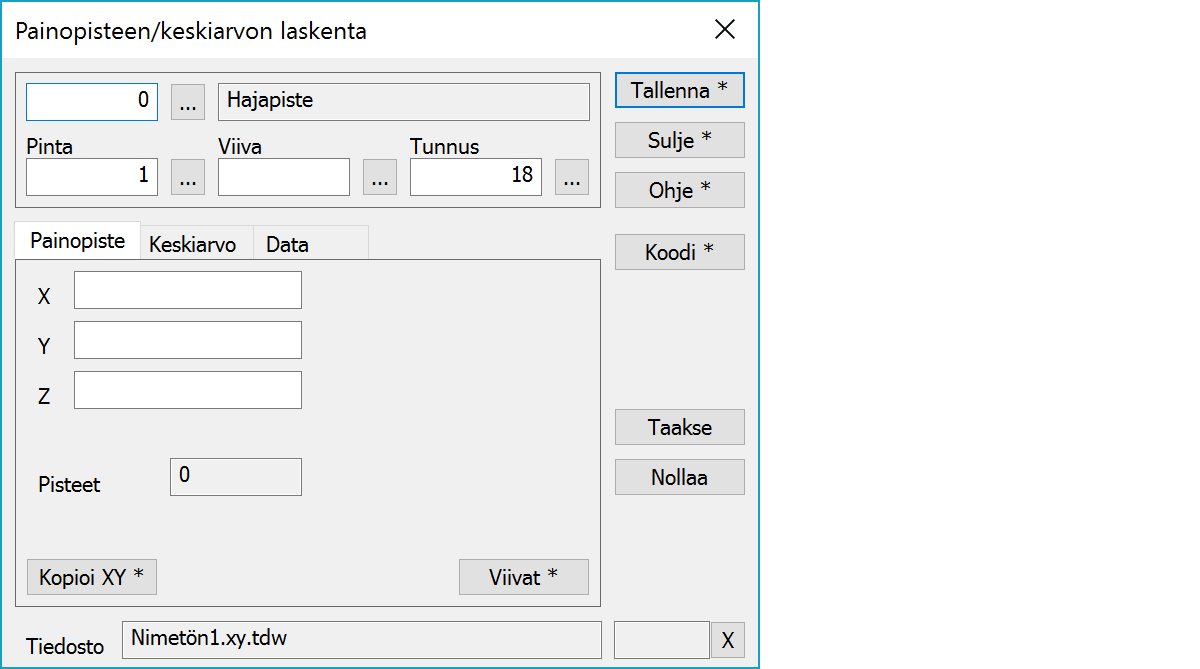 Painopisteen laskentaLaskee valitun pistejoukon painopisteen tai keskipisteen.