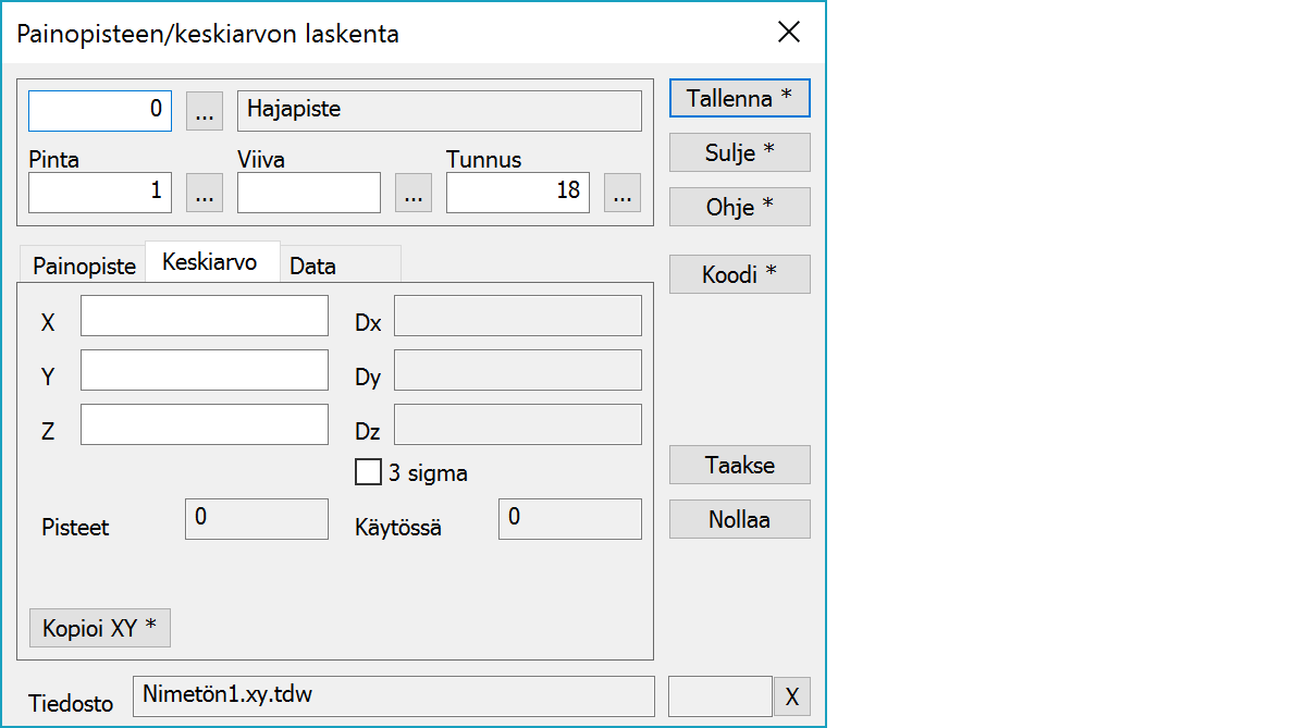 Painopisteen laskentaLaskee valitun pistejoukon painopisteen tai keskipisteen.