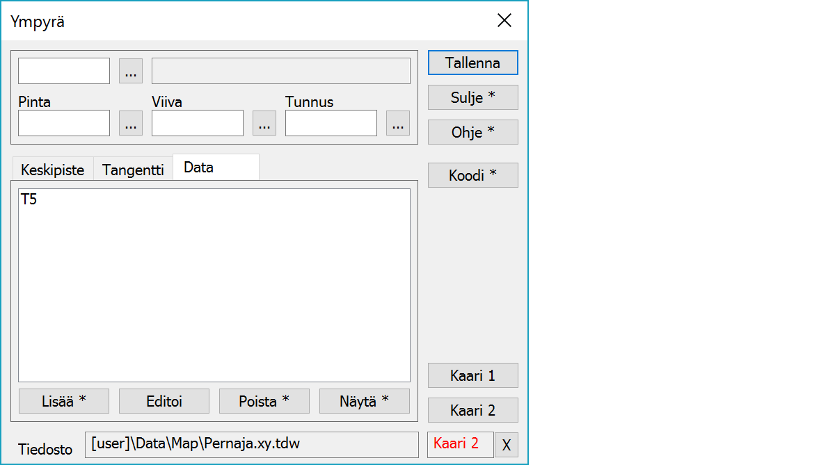 Uusi ympyrä voidaan lisätä toiminnoilla Lisää kohteita tai Editoi viiva.