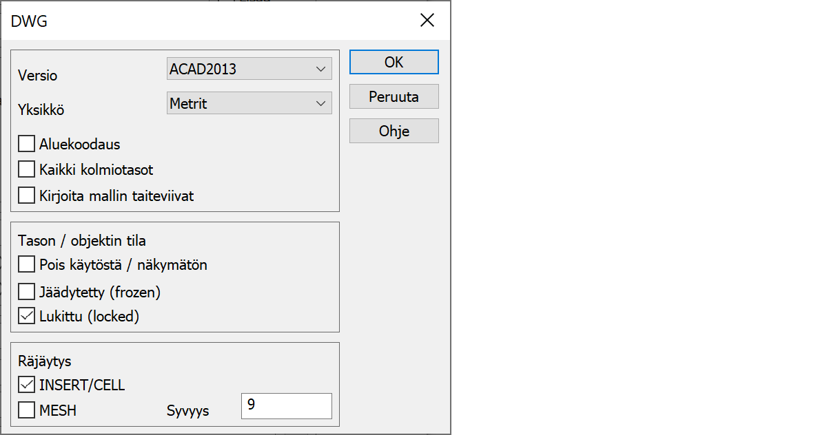 Tiedostopääte: DWG, DXF, DXB
