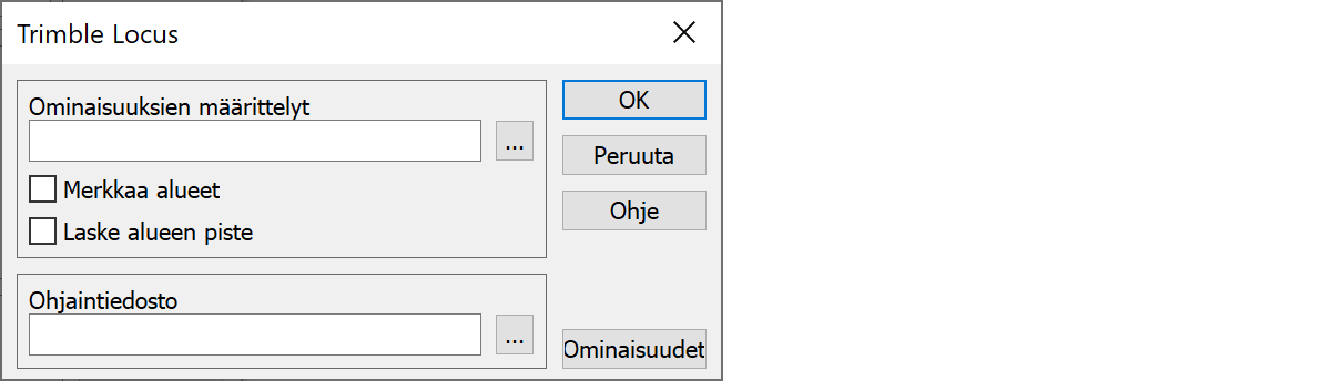 Ohjaintiedosto määrää ominaisuustietojen ja koodien viennin Trimble Locukseen.