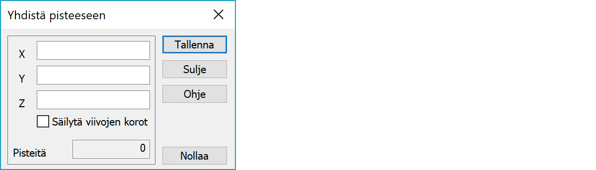 Yhdistämispisteenä on oletuksena kaikkien osoitettujen viivan päätepisteiden keskiarvo. Jos osoitetaan hajapiste hakutavalla Lähin piste, haetaan sen XYZ-koordinaatit yhdistämispisteeksi. Hakutavoilla Hiiri ja Hiiri XY haetaan vain XY-koordinaatit ja säilytetään korkeus.