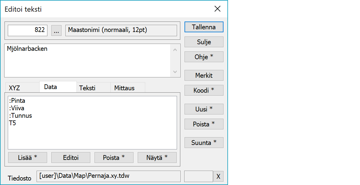 Editoi tekstejäTekstin editoinnilla voidaan editoida olemassa olevia tekstejä tai luoda uusia tekstejä. Editoitava teksti aktivoidaan klikkaamallaa sitä hiirellä.