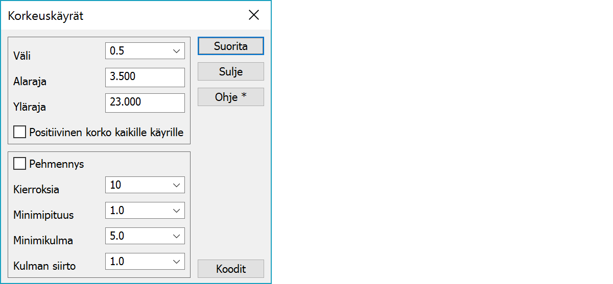 Käyrien pehmentäminen automaattisesti heti laskennan jälkeen. Pehmentäminen pyöristää korkeuskäyrien teräviä kulmia leikkaamalla ne pois.