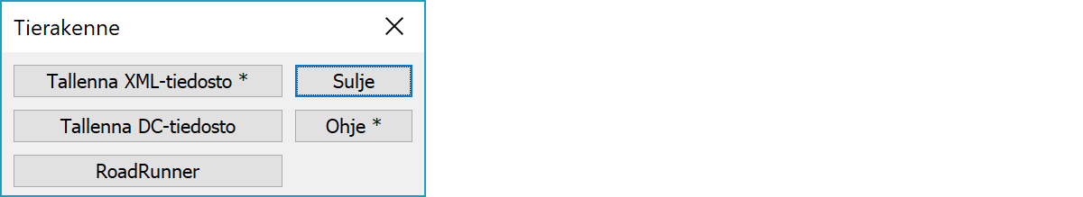 Käynnistää RoadRunner -muunnosohjelman, joka tekee XML-tiedostosta Leican takymetriin sopivan tietokantatiedoston.