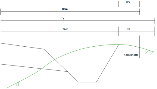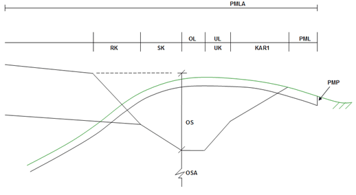 AK1 Ajoradan kaltevuus taitepisteen jälkeen