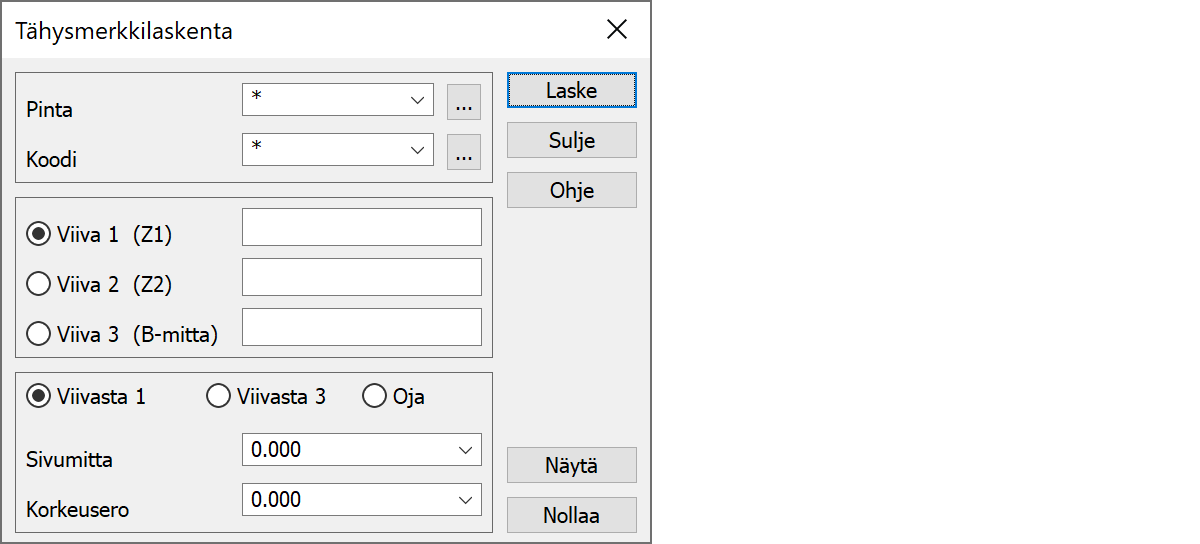 TähysmerkkilaskentaToiminto laskee ja tallentaa tiensuuntaisen taiteviivan aktiiviseen tiedostoon käyttäen taiteviivatiedostoa (tien suuntaiset viivat) ja ML-tiedostoa.