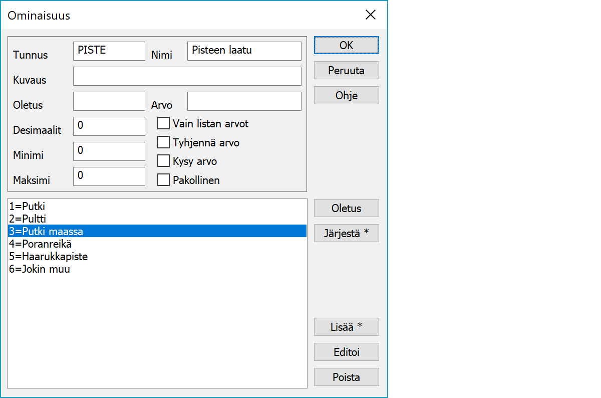 Ominaisuus on pakollinen. Kohdetta ei voida tallentaa antamatta ominaisuudelle arvoa.
