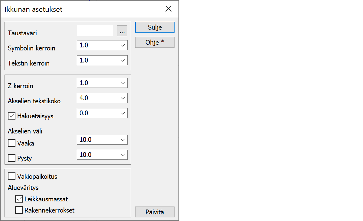 Poikkileikkausikkunan asetuksetPoikkileikkausikkunan asetukset