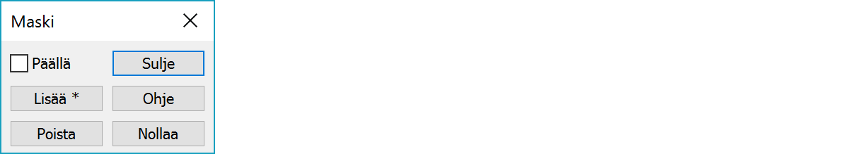 Maskia käytetään vain, kun Käytössä-rasti on valittuna. Muuten piirretään kaikki pisteet kuten normaalisti. Maski voidaan myös laittaa päälle/pois pikanäppäimellä Ctrl-M.
