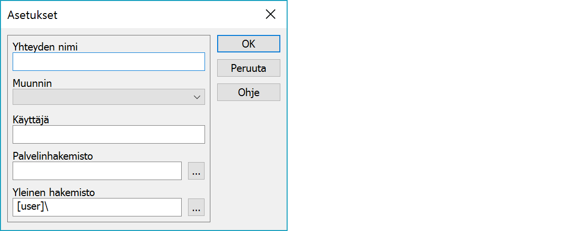 Palvelinyhteyden asetukset.