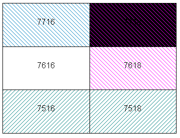 Lopullinen ruudukko kattaa koko annetun viivan alueen. Samassa tiedostossa voidaan antaa useita viivoja. Viivan T2-kentässä voi määrätä ruudukon nimeämisen. Oletuksena A 1 (A välilyönti 1), jolloin ruudut nimetään A1, A2, A3 jne ja seuraava rivi B1, B2, B3 jne. Jos haluat numeerisen muodon, anna esimerkiksi 1.1 (1 piste 1), jolloin ruudut nimetään 1.1, 1.2, 1.3 jne ja seuraava rivi 2.1, 2.2, 2.3 jne.