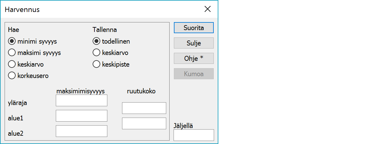 Tallennettava korkeus voi olla joko ruudun minimi- tai maksimisyvyys, ruudun syvyyksien keskiarvo tai ruudun minimin ja maksimin erotuksen itseisarvo.