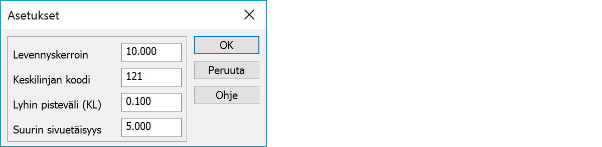 Vertaa ajolinjaan -toiminto ohittaa pisteet, jotka ovat kauempana keskilinjasta kuin tässä annettu sivuetäisyys.