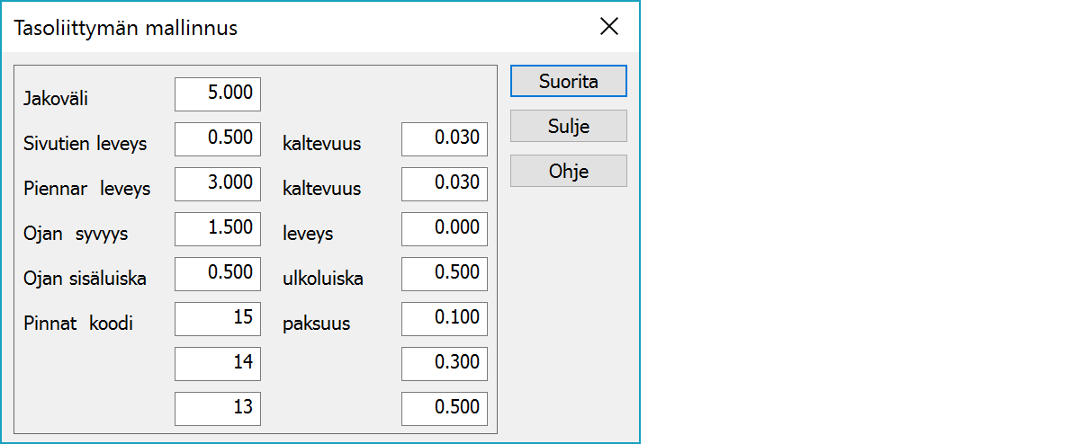 Leveys ei ole käytössä, kaltevuus määrää sivutien kaltevuuden, jota käyttäen lasketaan tien reunan korko.