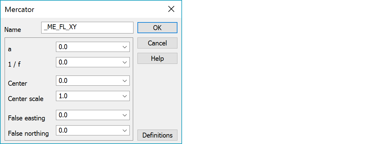 Parameters for Mercator-function. Note, that the Mercator XY coordinates are not metric, but degrees.