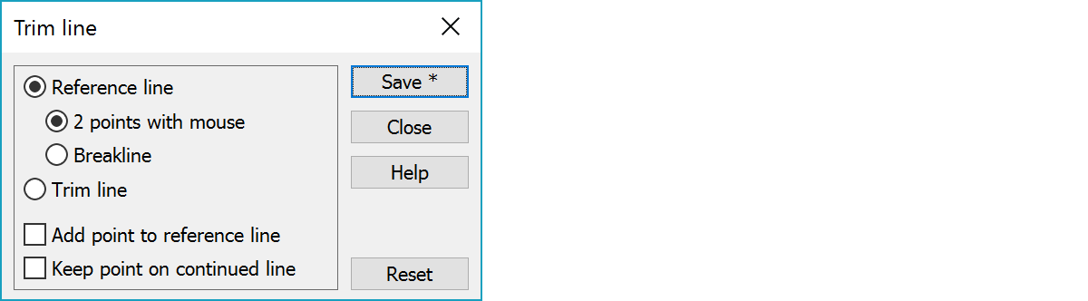 Adds intersection point automatically to reference line. Point height is calculated from reference line. Checkbox must be selected, when pointing trimmed line.