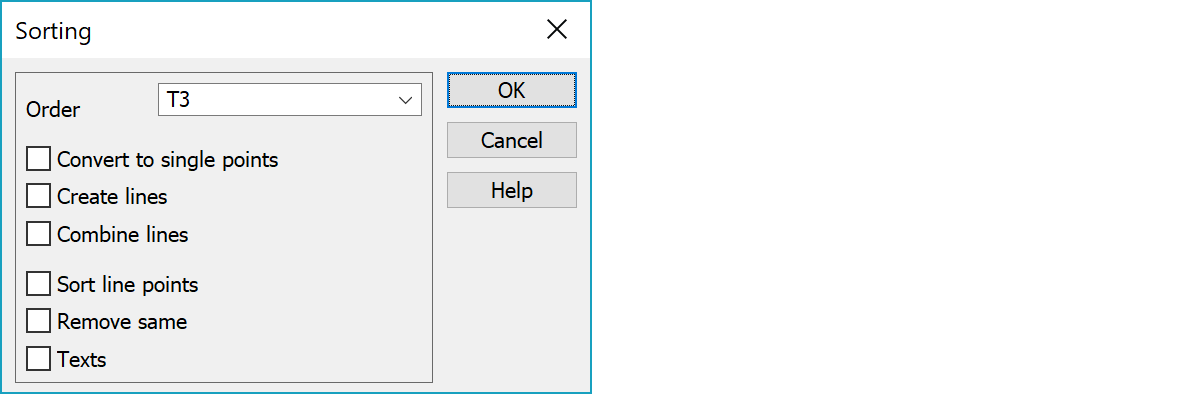 Convert lines into single points. This is needed, if you want to sort using e.g. point number or height. If this option is not selected, the internal structure of lines is not changed.