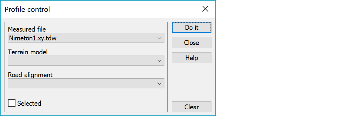 Profile controlLaskee rakolinjan tarkkeet annettuun maastomalliin nähden käyttäen TG-tiedostoa, joka määrää tarkkeen suunnan. Jokaiselle mitatulle pisteelle haetaan TG-tiedostosta paaluluku ja tältä kohdalta lasketaan poikkileikkaus maastomallista. Tarkemitta on mitaun pisteen lyhin etäisyys laskettuun poikkileikkaukseen
