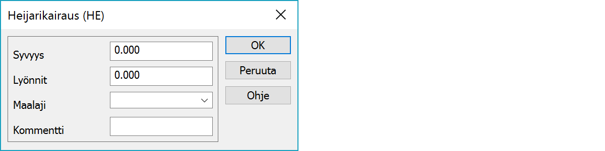 Listalla näkyvät maalajikoodit voidaan antaa Kairausasetus-dialogin Erikoisasetuksena.