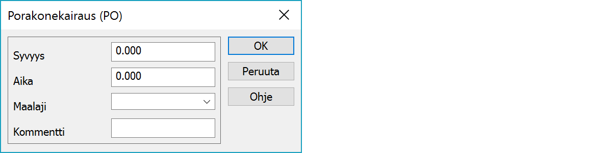 Listalla näkyvät maalajikoodit voidaan antaa Kairausasetus-dialogin Erikoisasetuksena.