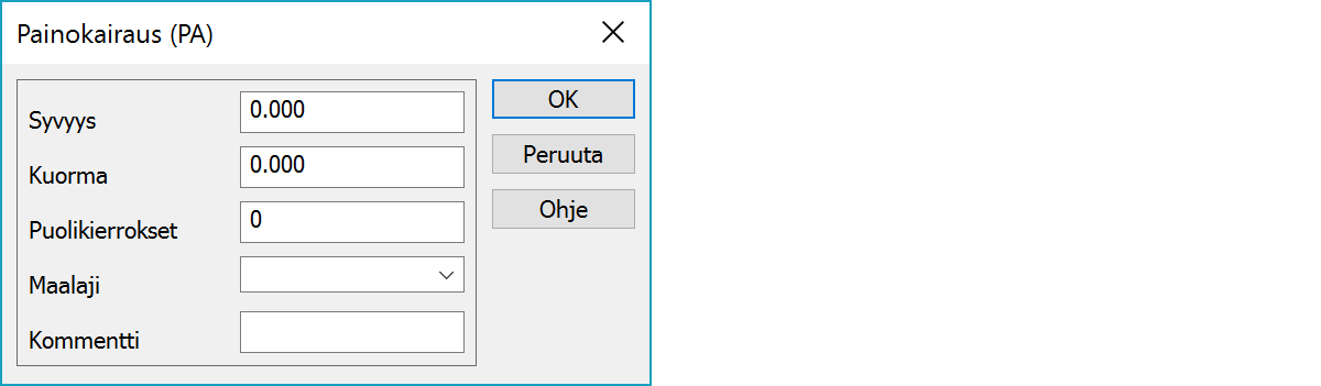 Listalla näkyvät maalajikoodit voidaan antaa Kairausasetus -dialogin Erikoisasetuksena.