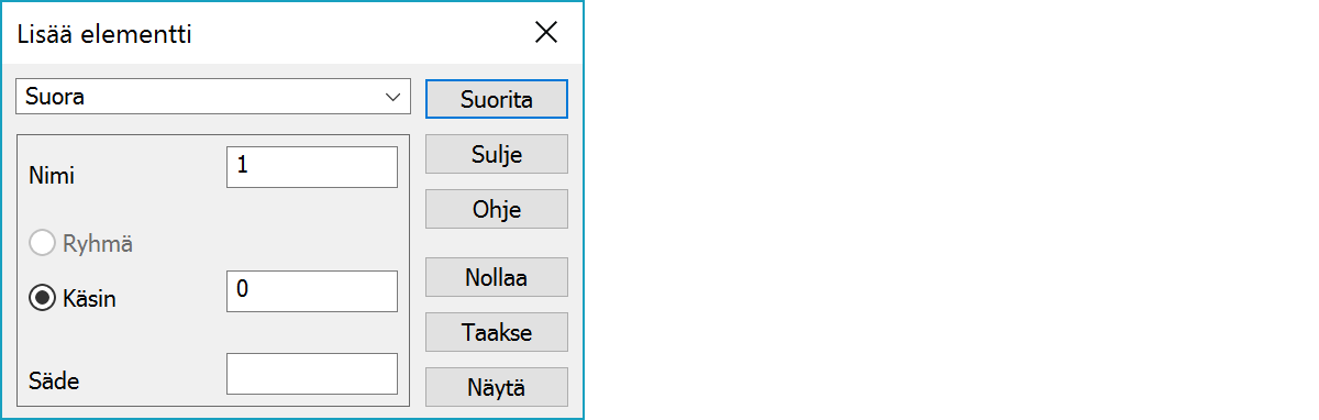 Valitse listalta elementin tyyppi (suora, taso, ympyrä, pallo).