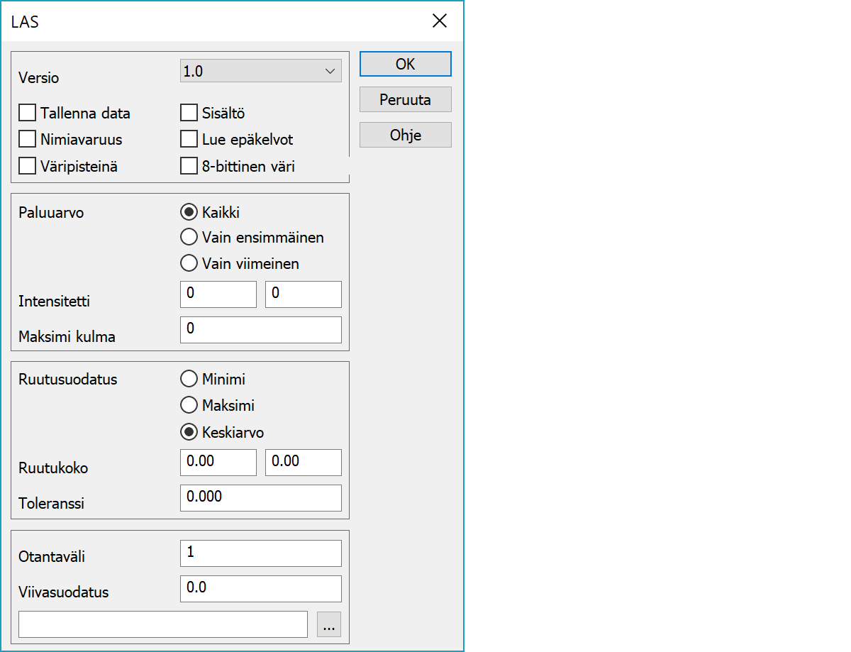 Kirjoitettavan tiedoston LAS formaattiversio.