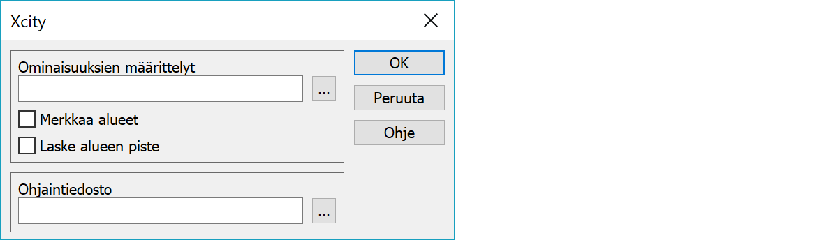 Ohjaintiedosto määrää ominaisuustietojen ja koodien viennin Xcityyn.