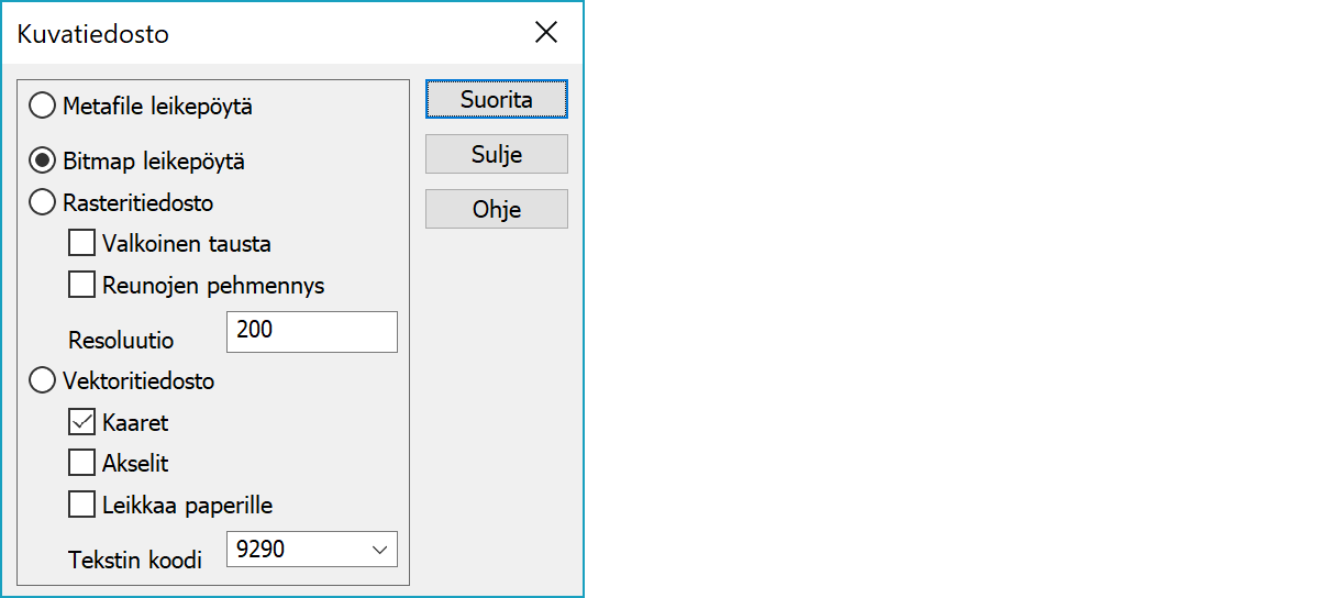Tallentaa kuvatiedoston leikepöydälle skaalattavassa Windows Metafile -muodossa.