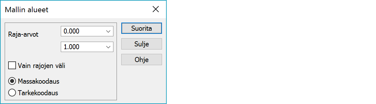 Muodostetuille alueilla käytettävä koodaus. Massakoodaus käyttää pintaa vastaavia kuvatiedostokoodeja (9800+) ja tarkekoodaus tarkemittauksen koodeja (9291, 9292, 9293).