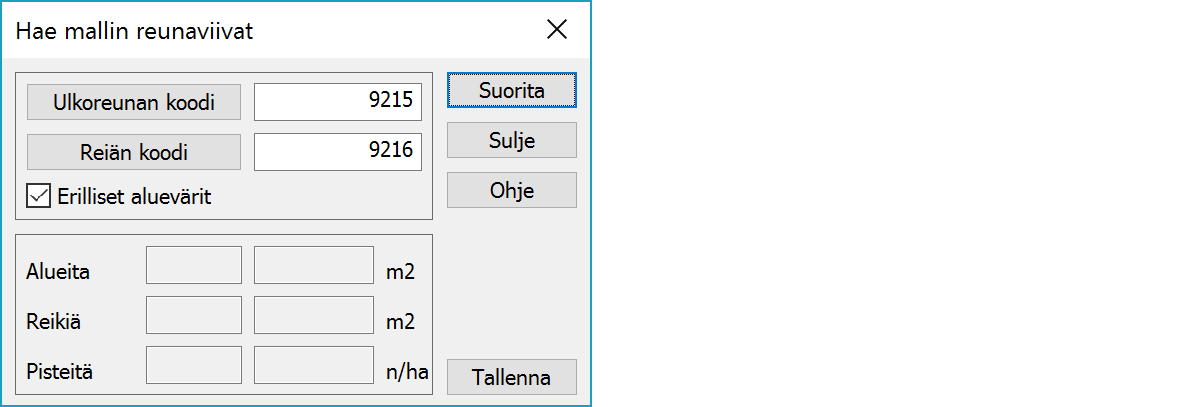Tämä toiminto hakee mallista reunaviivat (ulkoreunat ja reiät) ja muodostaa niistä sulkeutuvia taiteviivoja. Ulkoreunat ja reiät voidaan koodata (T3-kenttään) omilla koodeillaan, jotka määräävät viivan esitystavan sekä mahdollisen rasteroinnin. Viivat koodataan automaattisesti alueiksi.