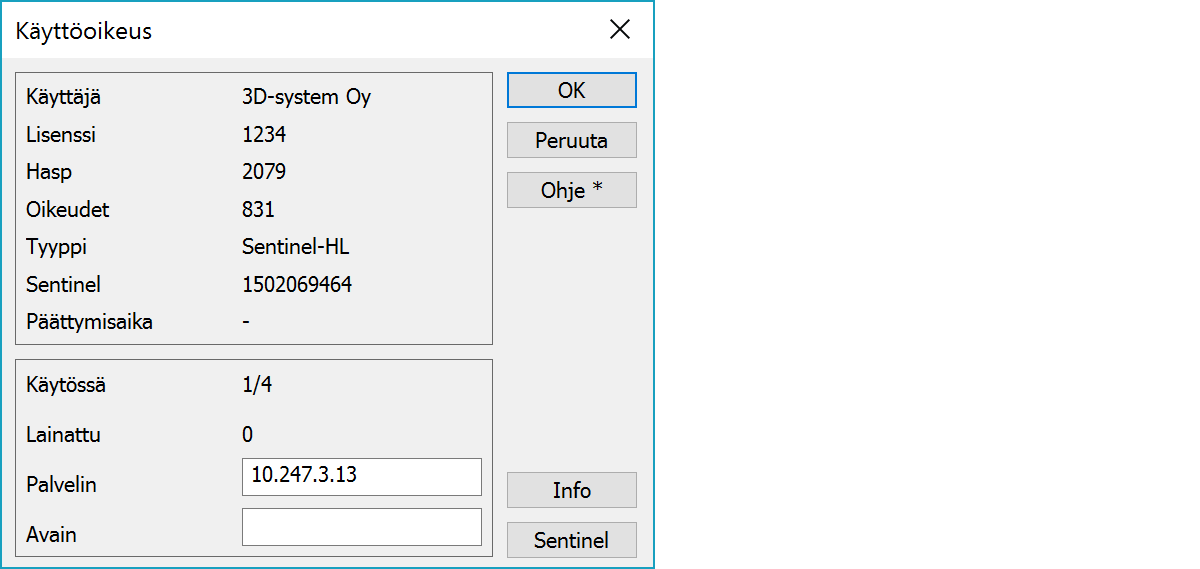 Verkkolisenssin palvelimen nimi tai IP-osoite. Tämä voidaan antaa myös ohjelman asennushakemistossa olevassa network.ini -tiedostossa.