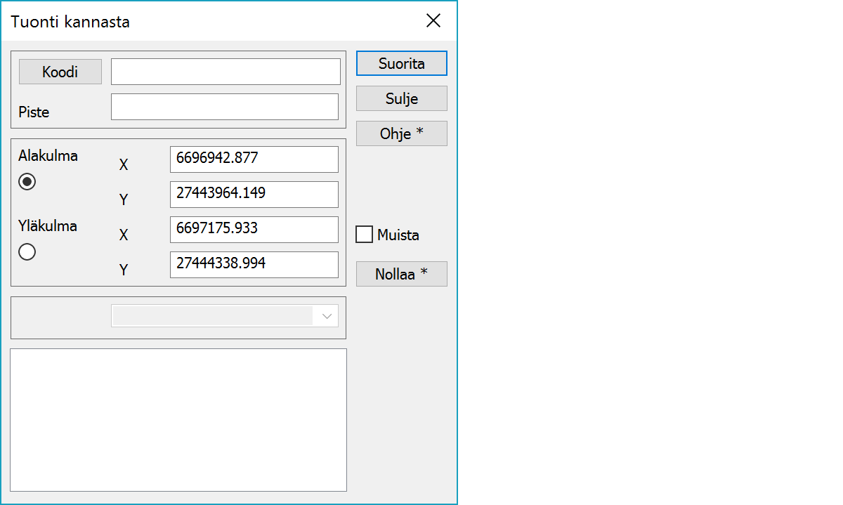 Nollaa annetun koordinaattirajauksen. Ei nollaa koodi- ja pistenumeroa. Shift-näppäimen kanssa nollaa kaikki kentät.