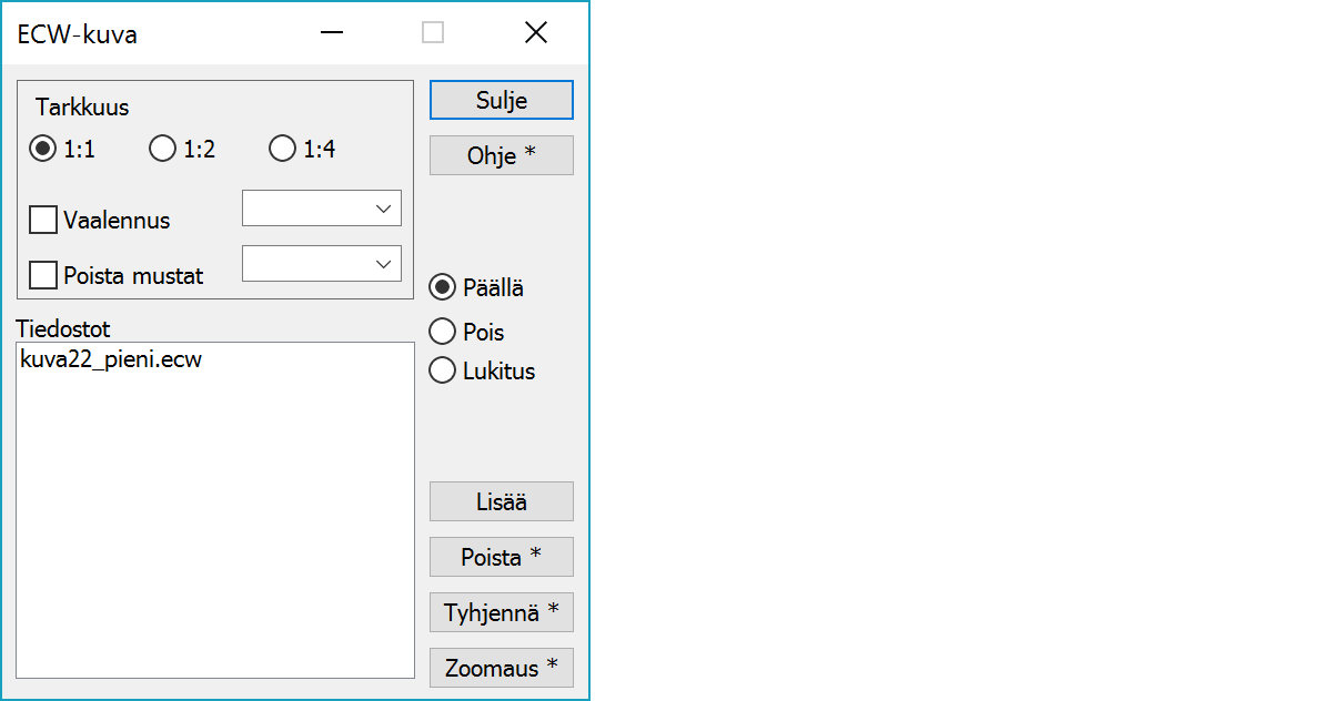 Kohdassa Työkalut/Muut/ECW OnOff voit kytkeä Päälle/Pois ECW-kuvan piirron.