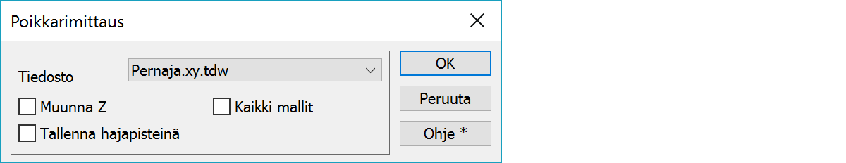 Poikkarin pisteet talletetaan hajapisteinä käyttäen pintatunnusta 9. Jos poikkari on mitattu useana erillisenä viivana, säilyvät viivat erillisinä myös poikkileikkauksessa.
