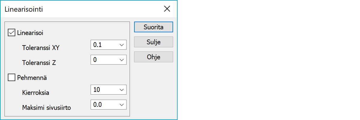 Linearisoinnissa käytettävä toleranssi erikseen vaaka- ja pystysuunnassa. Jos Toleranssi Z on nolla, sitä ei käytetä.